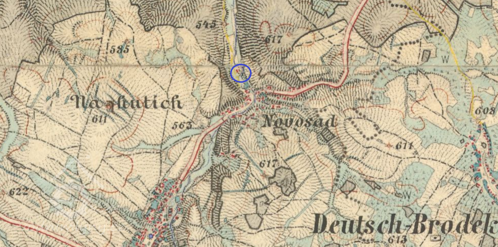 200 m sz od kaple v Nových Sadech