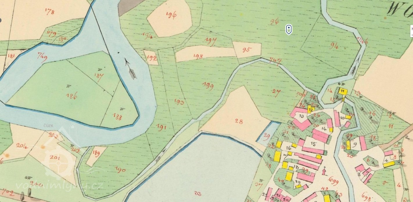 1648 urbář štěkeňského panství: prázdné místo po Práškovském mlýně, oceněné na 50 kop grošů