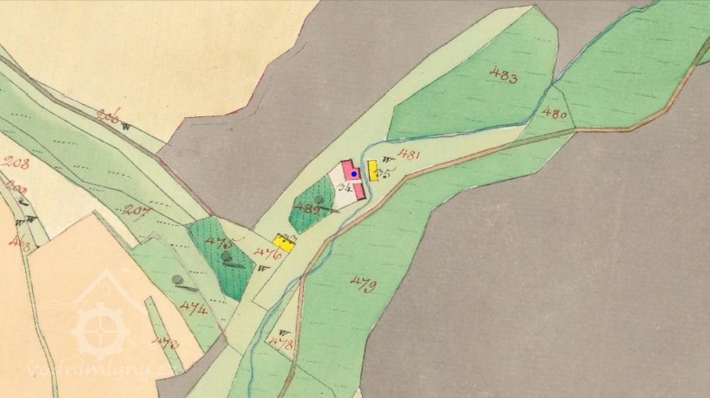 Další z řady malých mlýnů ve Žlebech, 1930 registrován jako mlýn a pila.