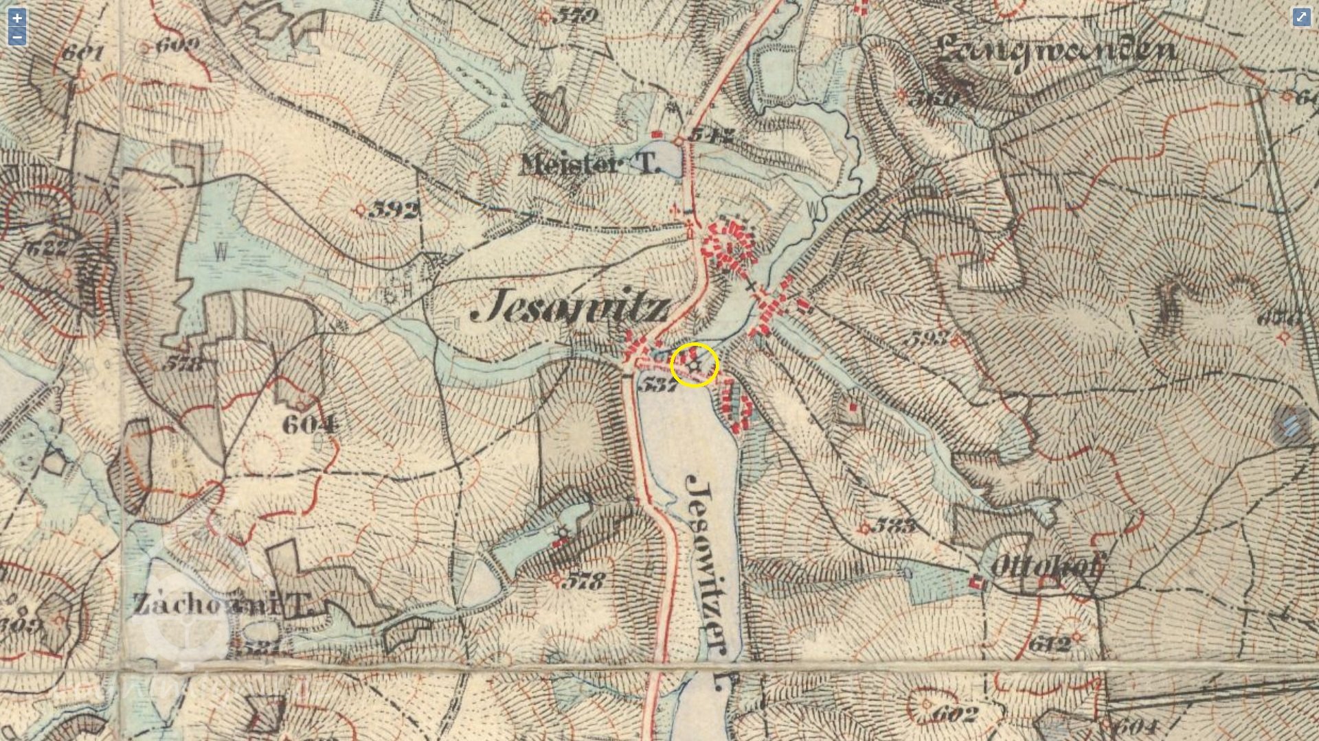 350 m sz od pravoslavného chrámu sv. Jana Šanghajského a Sanfranciského v Jezdovicích