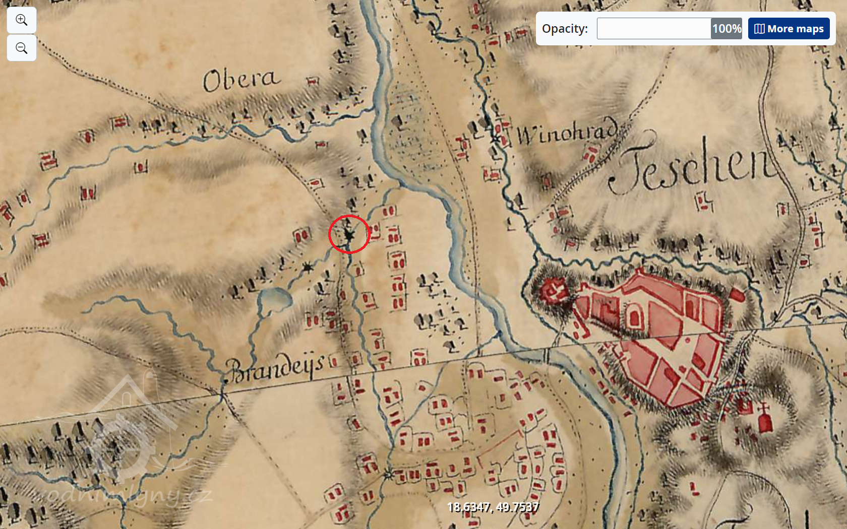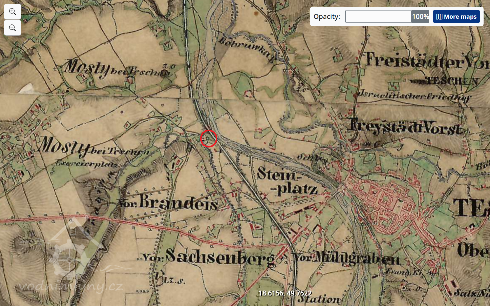 Druhý mlýn v naší části Těšína, těsně před soutokem dnes již zaniklého dlouhého náhonu Ropičanky s Olší. Mlýn patrně zanikl, na jeho místě dnes zřejmě novostavba.
