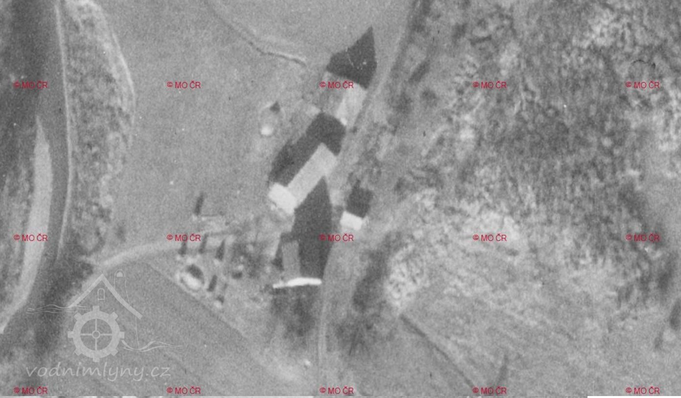První mlýn v Těrlicku, zbořený 1958 před napouštěním přehrady.