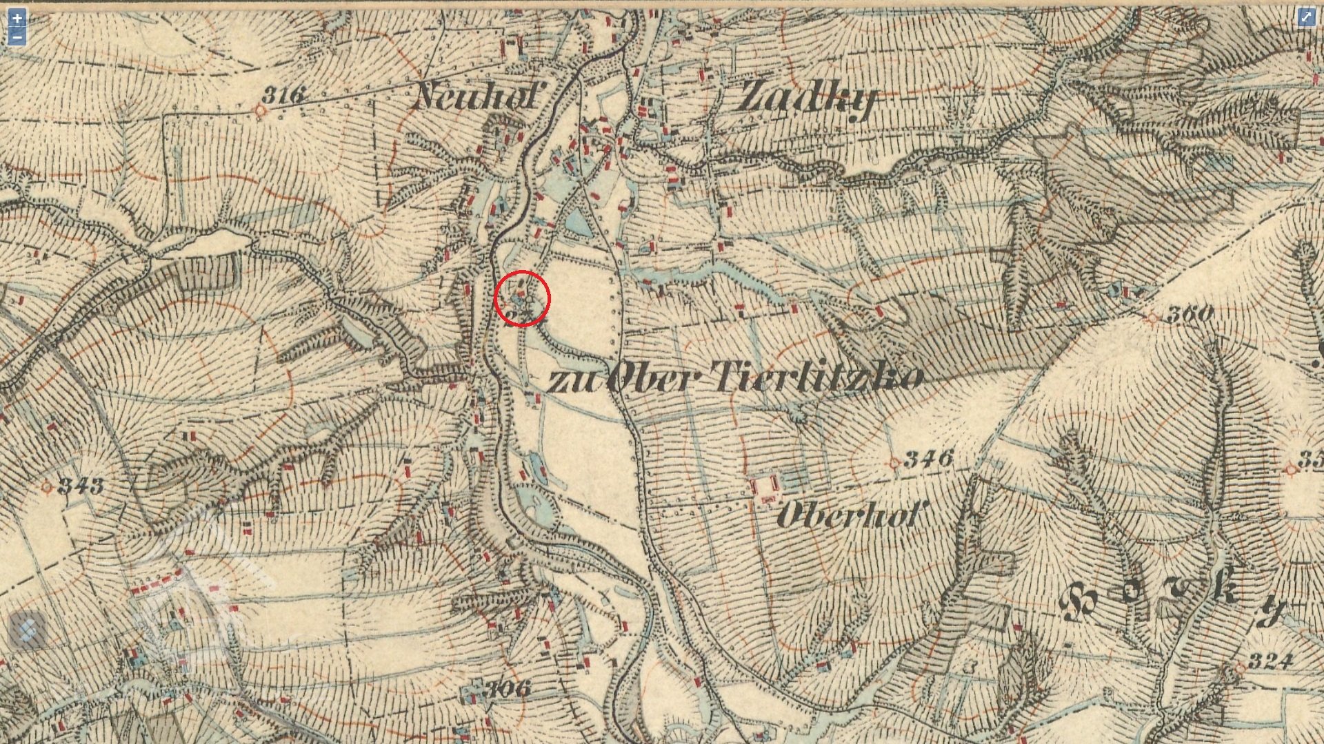 1,5 km jižně od zámku v Horním Těrlicku (na začátku vzdutí)