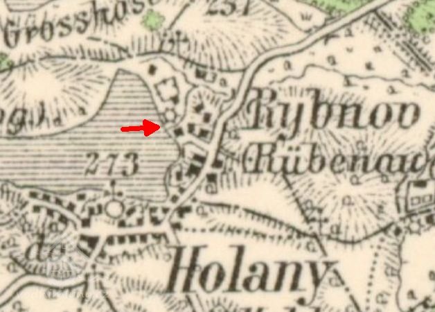 Mlýn Rybnově (k.ú. Holany) vznikl nejspíš v roce 1455, kdy byl založen Holanský rybník a tvrz Rybnov. Budova mlýna byla zbořena v 70-80. letech 20. století. (info Petr Randus)