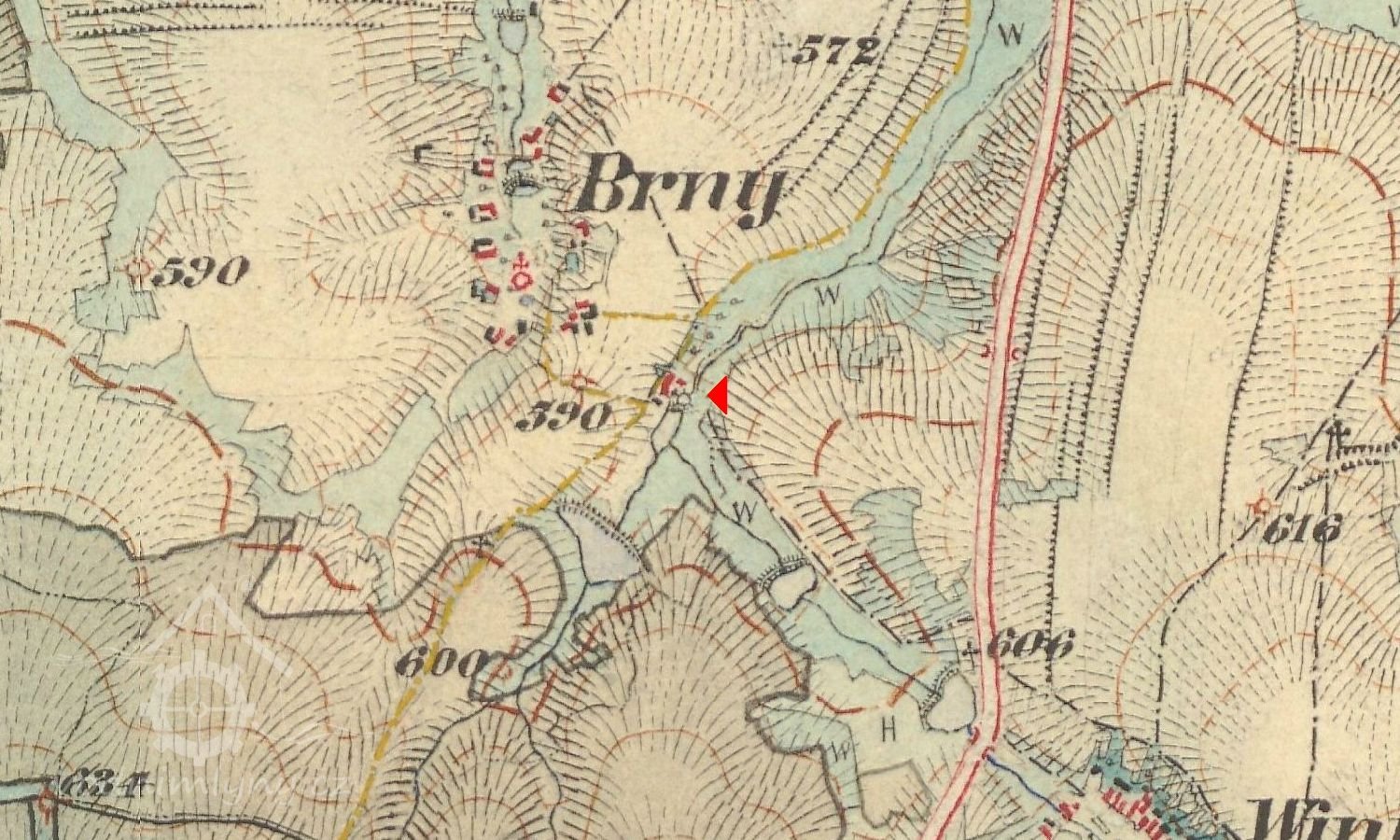 Na konci komunikace, která obcí Brná prochází od Věžný stojí budovy bývalého Brnského mlýna, jak je uveden na mapách. Mnoho toho nevíme.