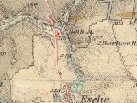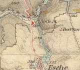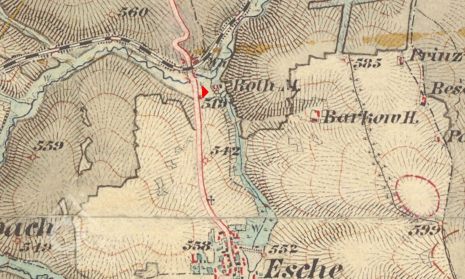 Vpravo vedle silnice z Eše do Pacova stojí budovy bývalého Červeného mlýna. Stav budov odpovídá době, kdy naposledy mlýn mlel to je do roku 1947. Vpravo od mlýnice byla i samostaná budova pily. První zmínky o mlýně jsou z roku 1806 a mlynáři se zde často střídali.