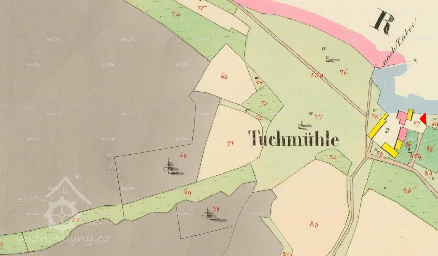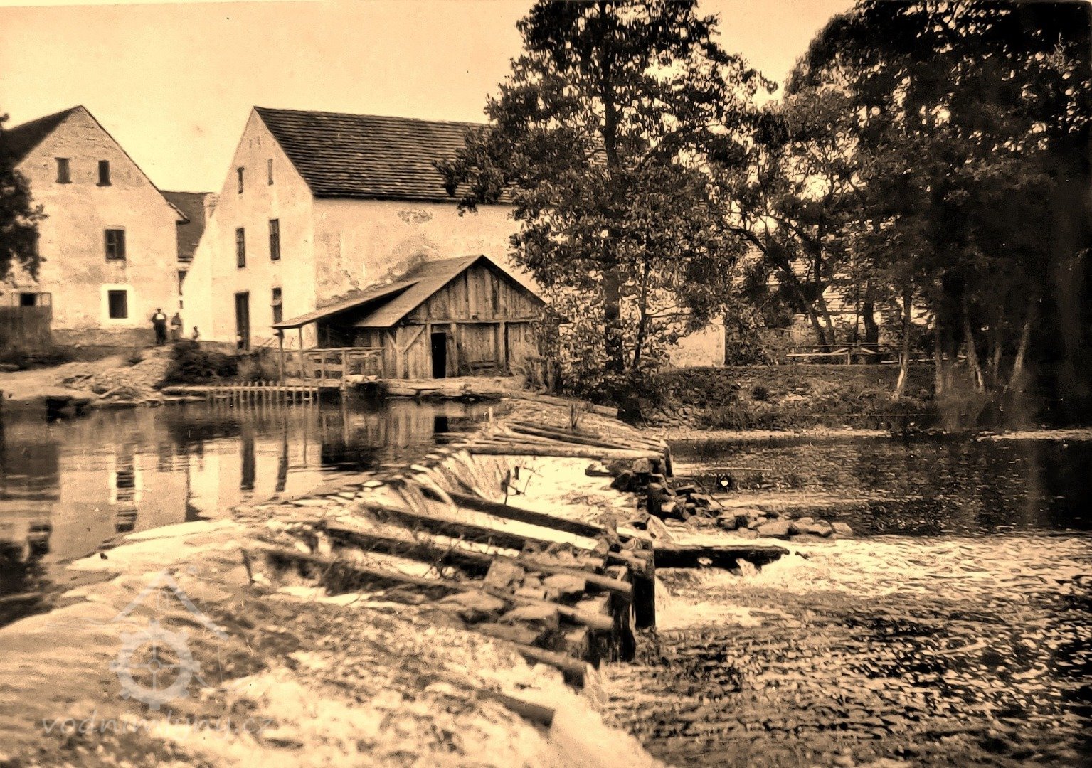 Popis1930: 1 ocelové kolo na spodní vodu, hltnost 2,396 m3/s, spád 1,1 m, výkon 11,6 HP
