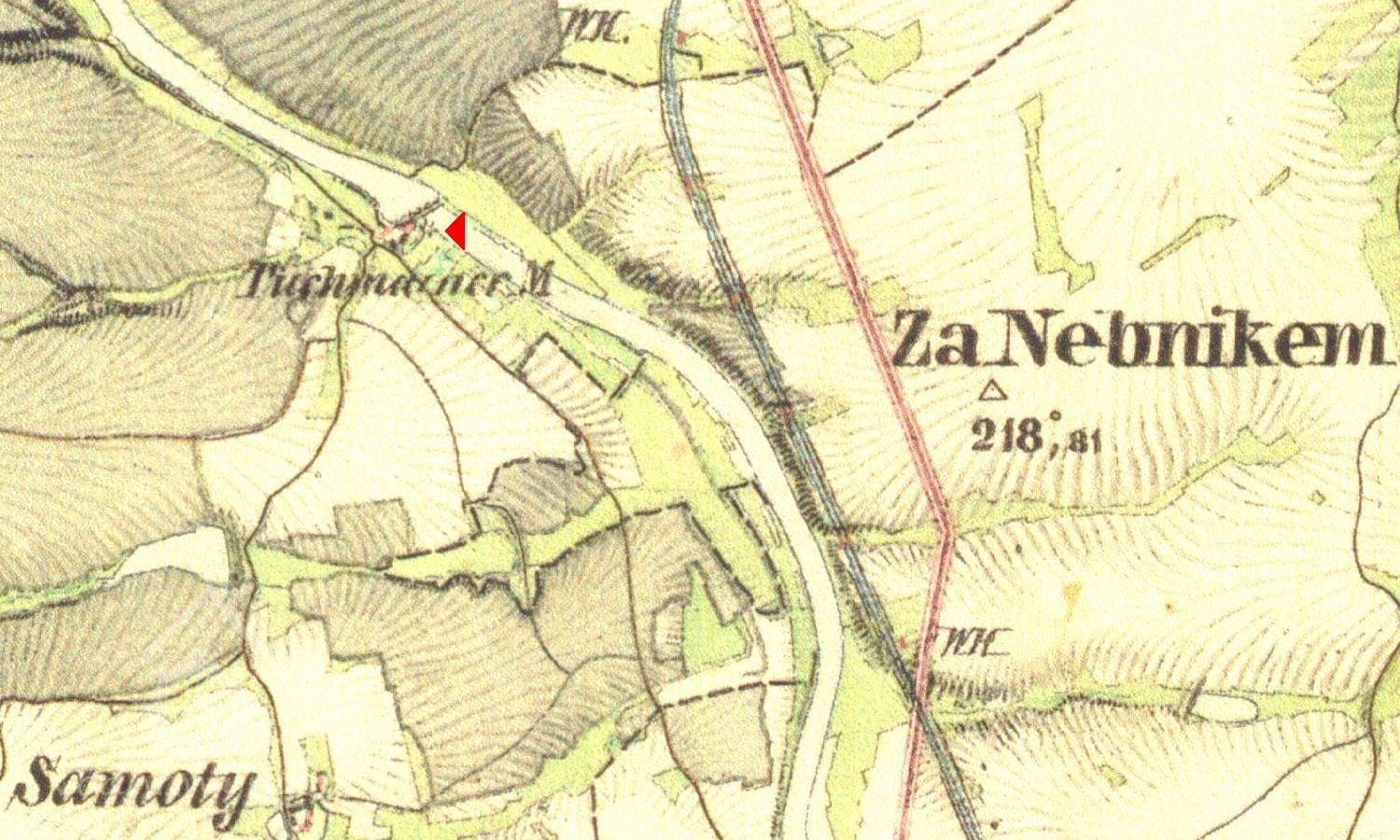 Roku 1542 náležel obci Táborské, jíž platil Matouš mlynář 36 grošů, z .... 24 groše a ze slupi 10 grošů. Již tehdá byl tu přívoz, z něhož platil Chytra jednou 30 grošů. R. 1564 držel mlýn Martin Suchomel.