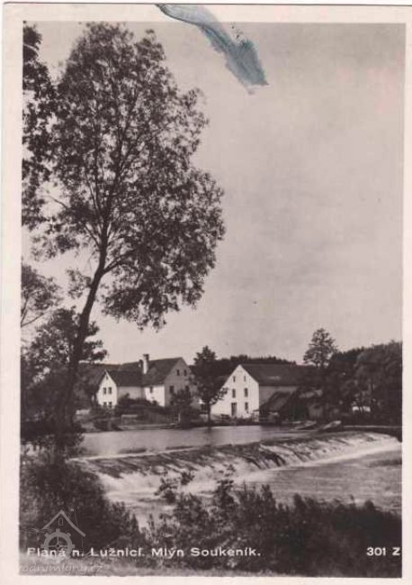 Mlýn Soukeník v třicetileté válce zpustl a r. 1631 prodán Janu Suchomelovi, soukeníku Plánskému, od něhož obdržel dnešní jméno Soukeník. Rod ten měl mlýn do r. 1709, potom svobodník Jáchym Daniel.