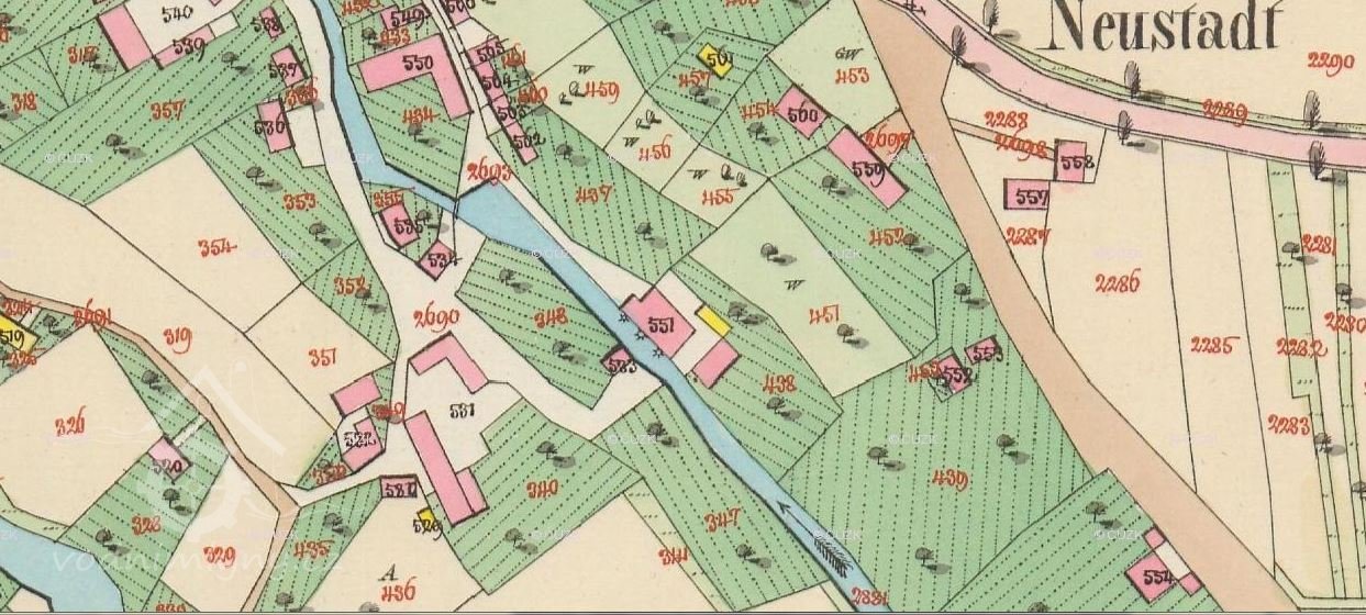 v pol. 15. stol. zmíněna vinice nad mlýnem