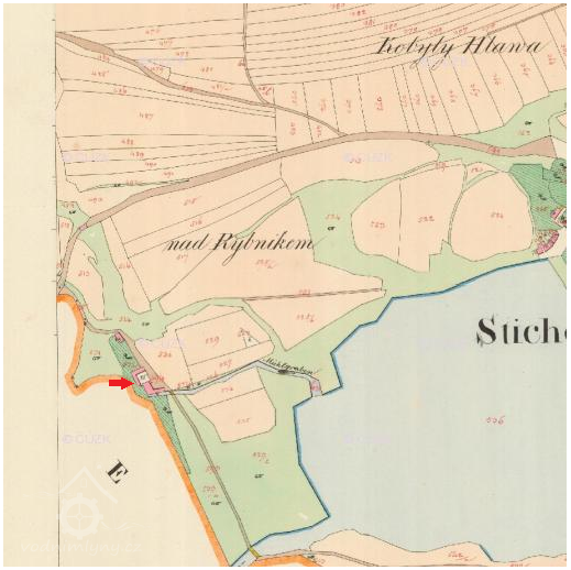 cca 150 m od penzionu U Valáška (na staré hrázi)