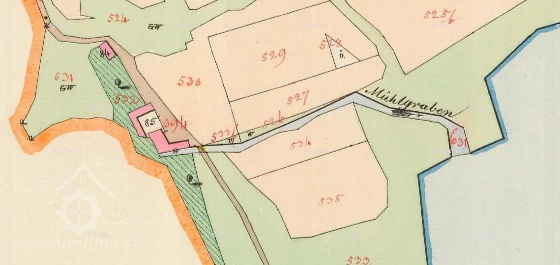 • prostup pro hřídel vodního kola