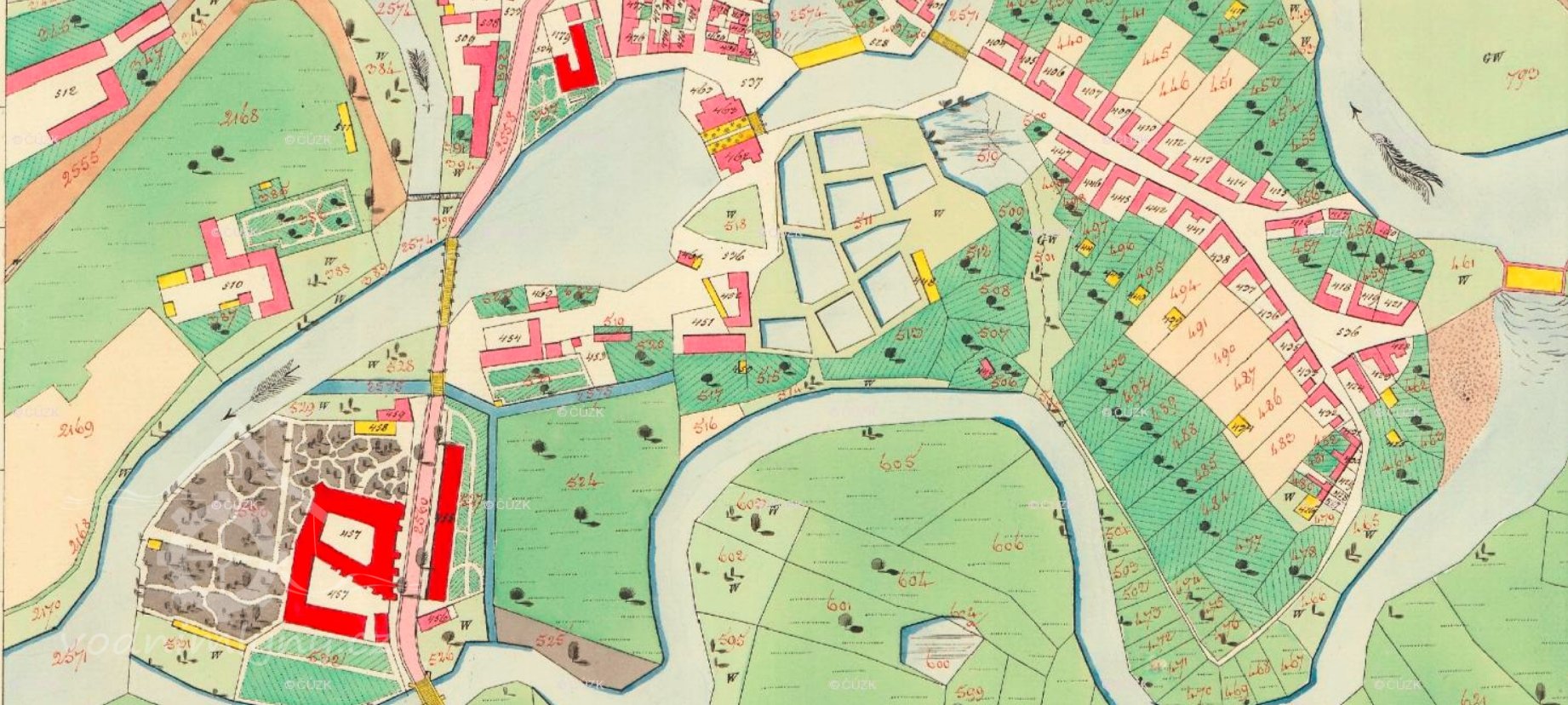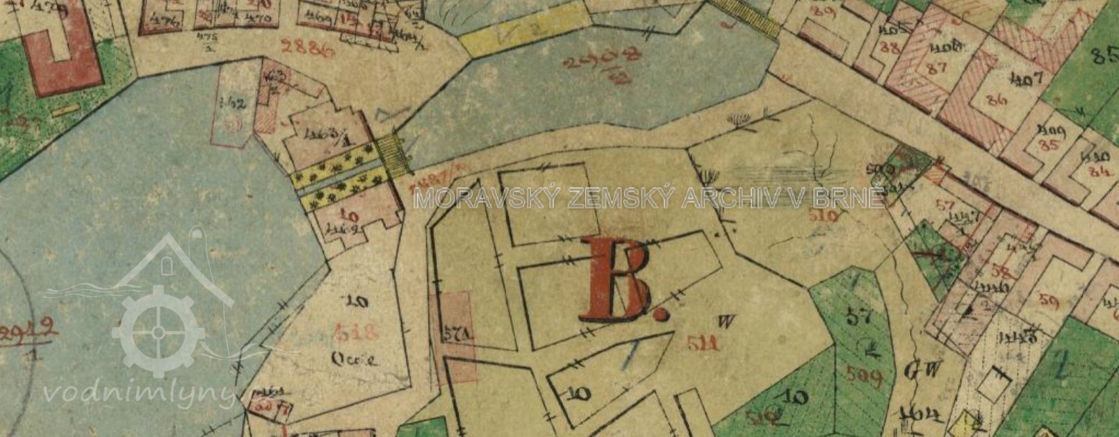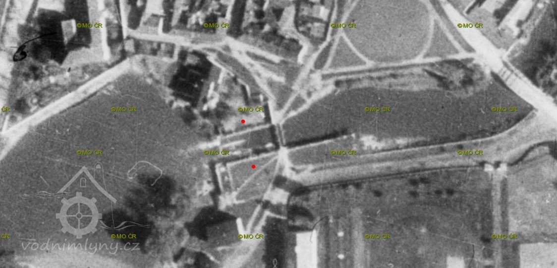 Mlýn stával na obou březích staré Moravy uprostřed města, nedaleko zámku. (JB)