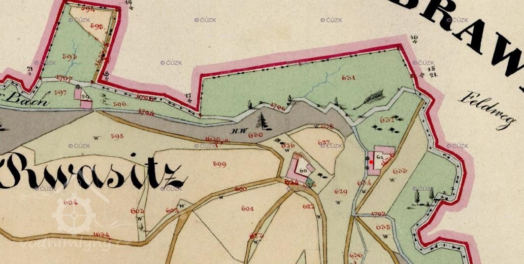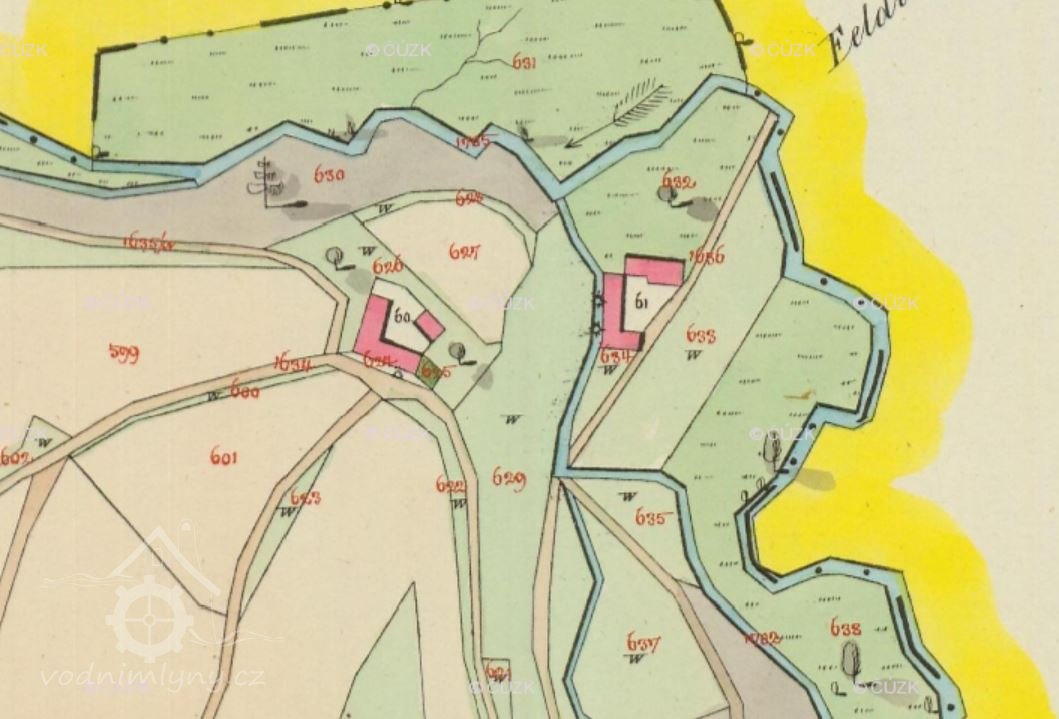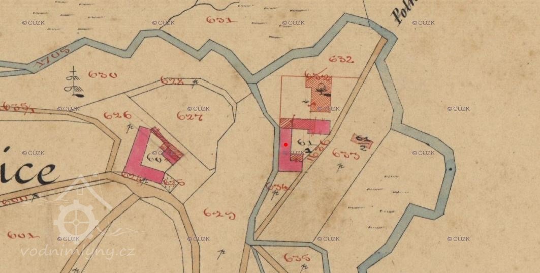 Popis1930: 1 kolo na svrchní vodu, hltnost 0,25 m3/s, spád 2,65 m, výkon 4,5 HP, prům. 280 cm