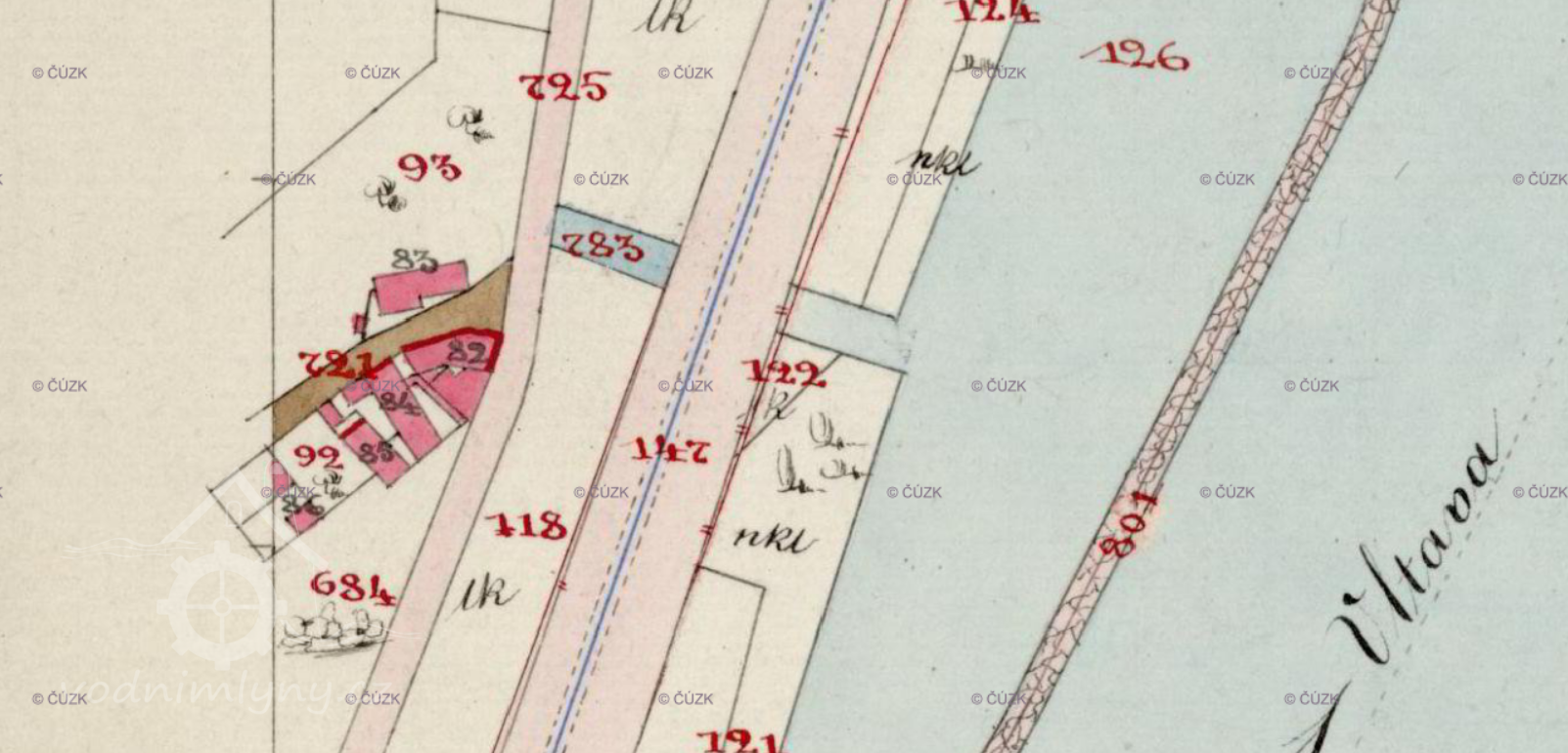 1590 I. zmínka o mlýně, když se projednávala pozůstalost po novoměstském měšťanu Janu Kutovcovi z Úrazu, který vládl Hlubočepy a Zlíchovem.