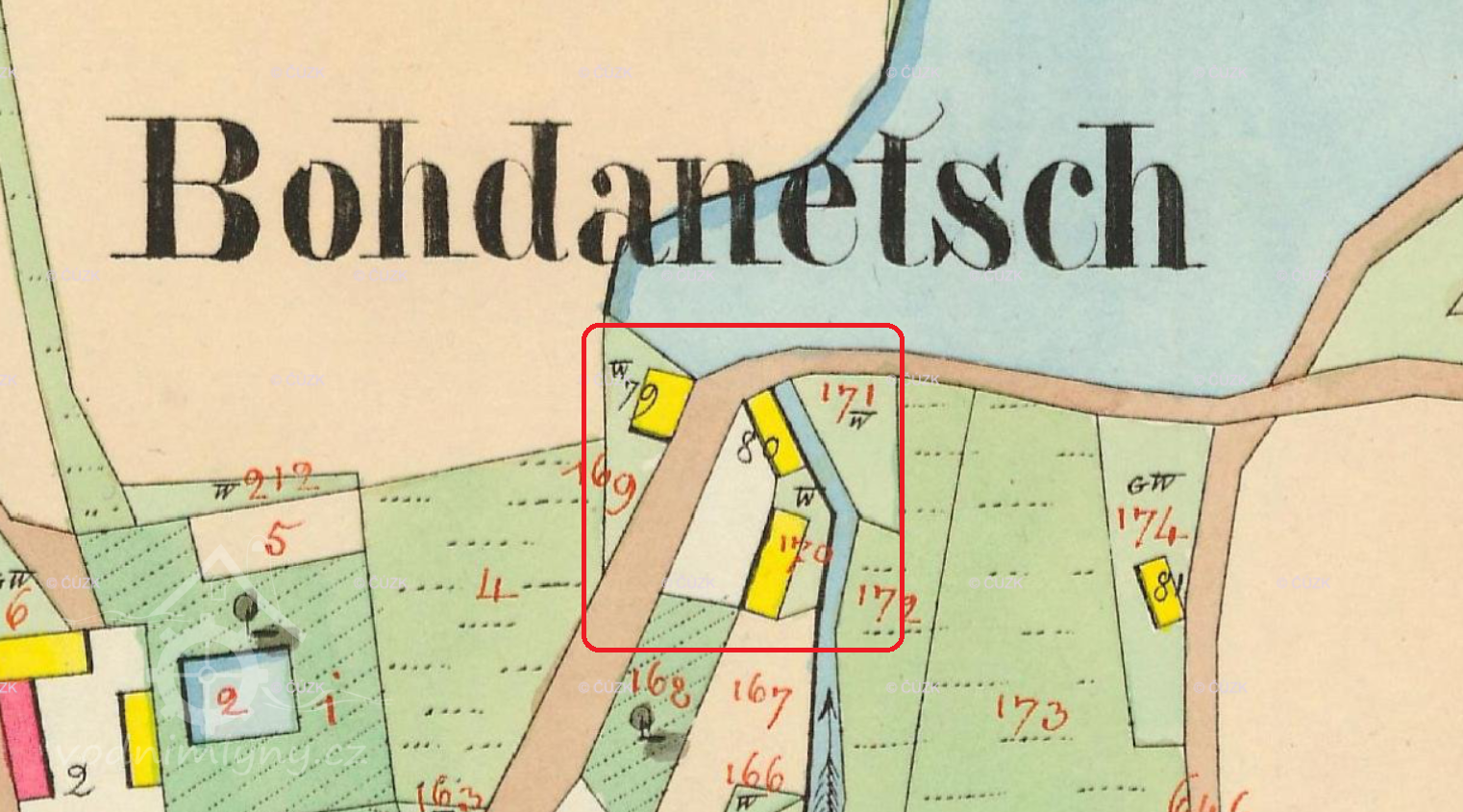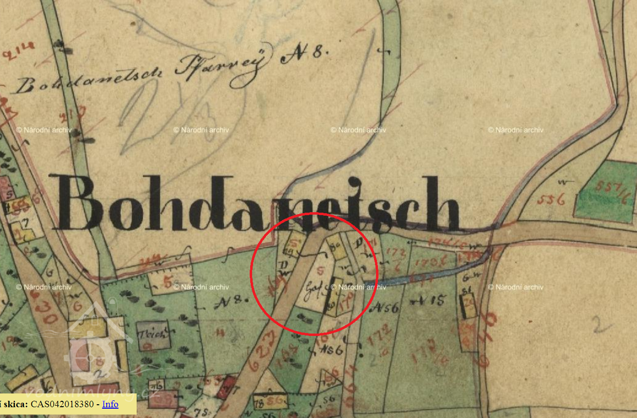 1757 zachycen v dominikálu Tereziánského katastru