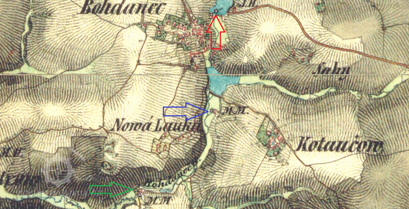 Panský mlýn v Bohdanči, doložený v dominikálu Tereziánského katastru, patrně již koncem 18. stol. přebudován na velkou panskou pilu, obsluhující lesy ledečského panství, dnes z větší části zbořenou.