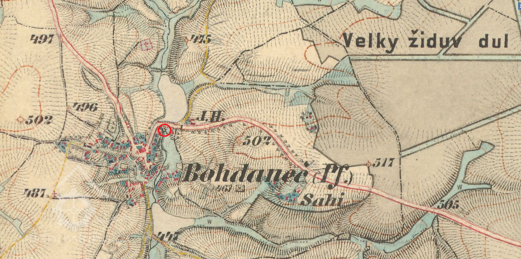 200 m sv od kostela Zvěstování Páně v Bohdanči