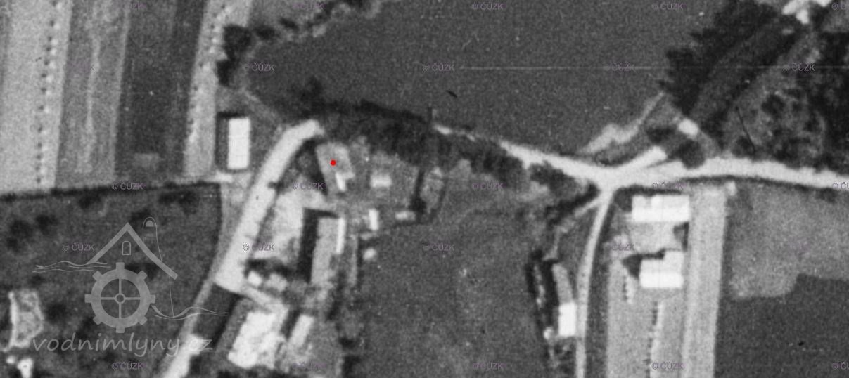 1938: Voda na pilu přivádí se z rybníka velkostatku č. kat. 175, jehož výměr jest 3, 7218 ha s kamenným propustkem světlosti 40 x 40 cm. Tento propustek prochází pod tělesem okresní silnice a jest 10,7 m dlouhý. Propustek na straně rybníka opatřen jest dřevěným stavítkem 60 cm ve světlosti. Voda z tohoto stavítka pouští se propustkem do dřevěných vantrok o délce 2,87 m a výšce 1,60 m. Vantroka jsou uvnitř 83 cm široké a nadrží se v nich vody na výšku 1,30 m. Není uváděn materiál vantrok, ale podle rozměrů to bude beton. Z vantrok pouští se voda na vodní kolo dřevěným žlabem 1,22 m dlouhým, 56 cm širokým a 23 cm vysokým.