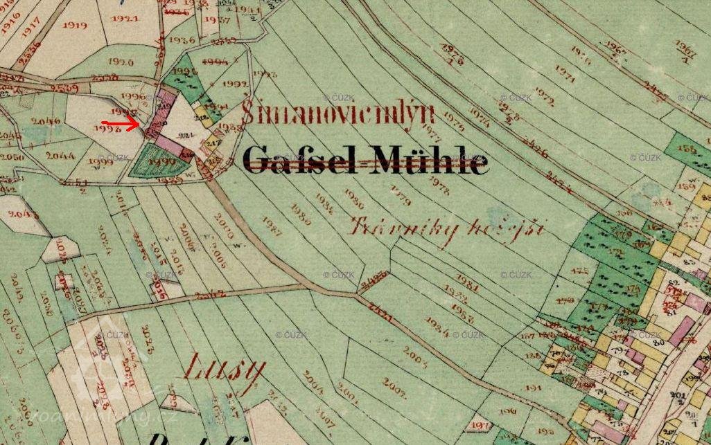 Šimanův, Kostlivého mlýn; Goslaweymühl, Gasselmühle