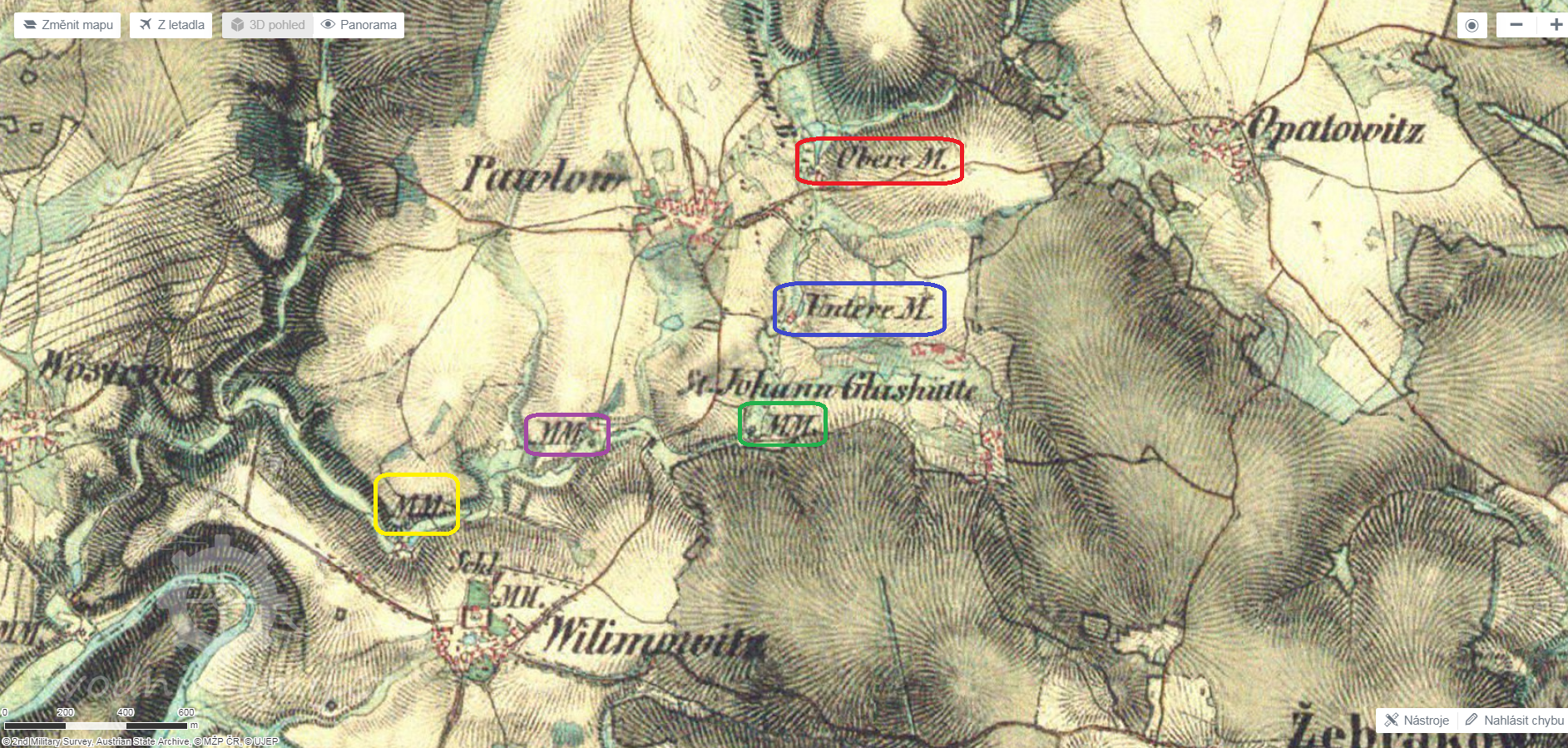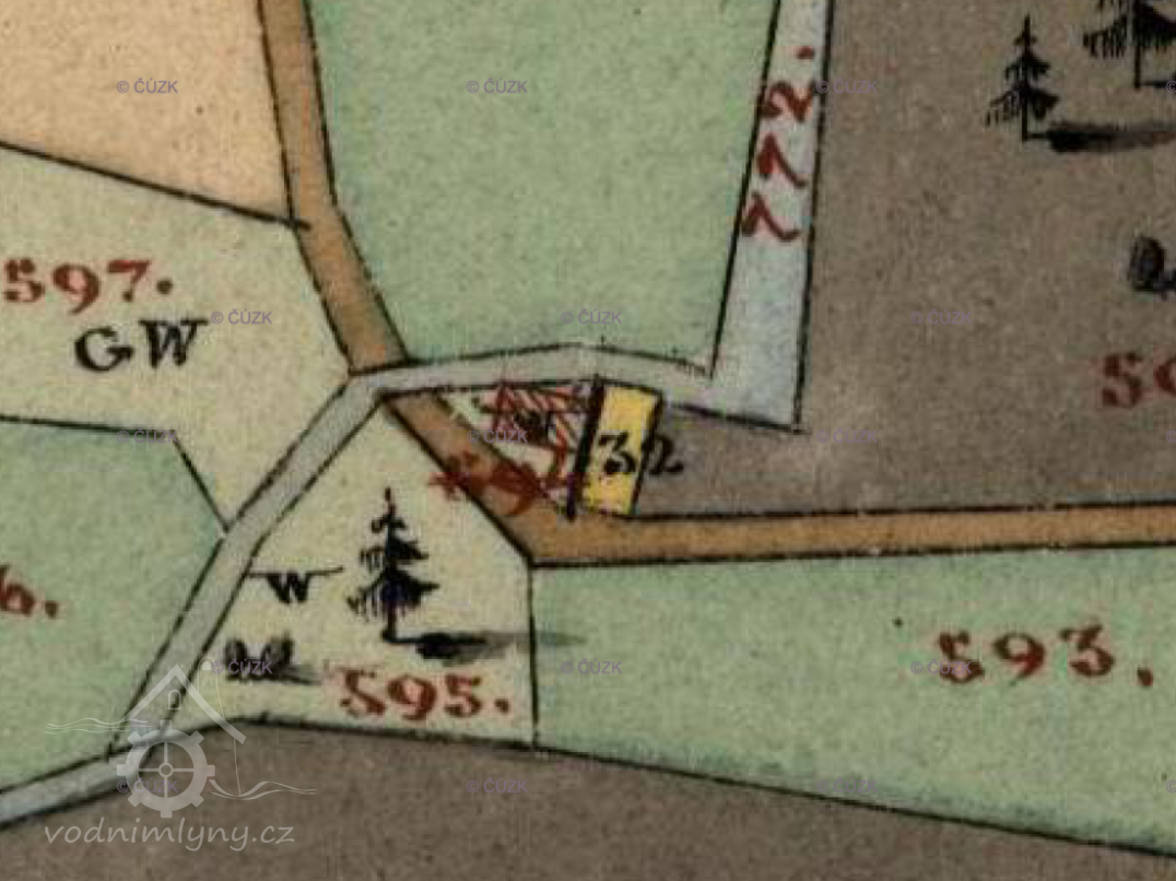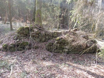 Malý mlýn, patrně původně příslušenství Svatojánské skelné huti, zachovány pouze základy a terénní zbytky (mj. hráz akumulační nádrže).