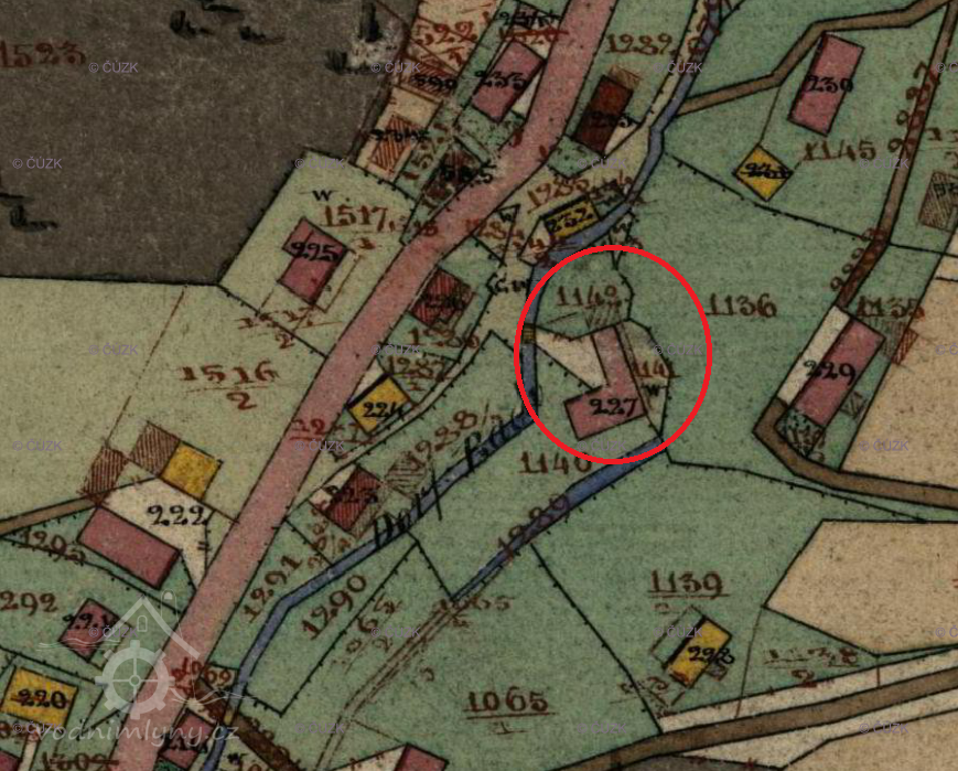 Popis1930: 1 kolo na svrchní vodu, hltnost 0,093 m3/s, spád 6,2 m, výkon 5 HP