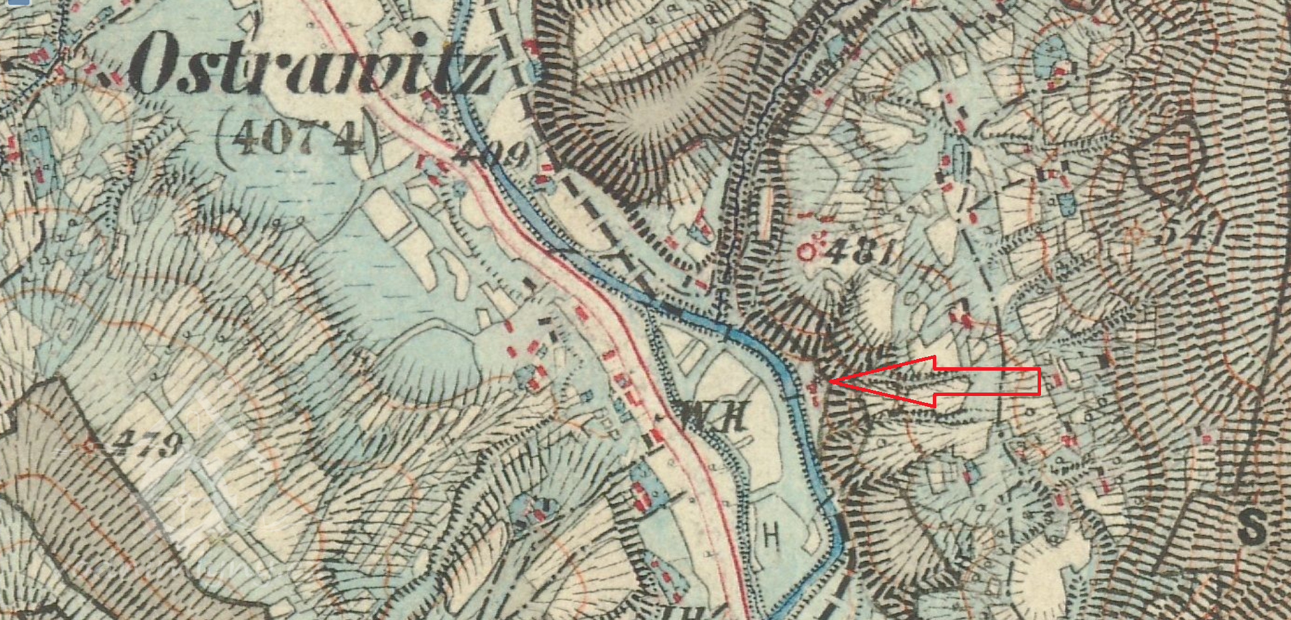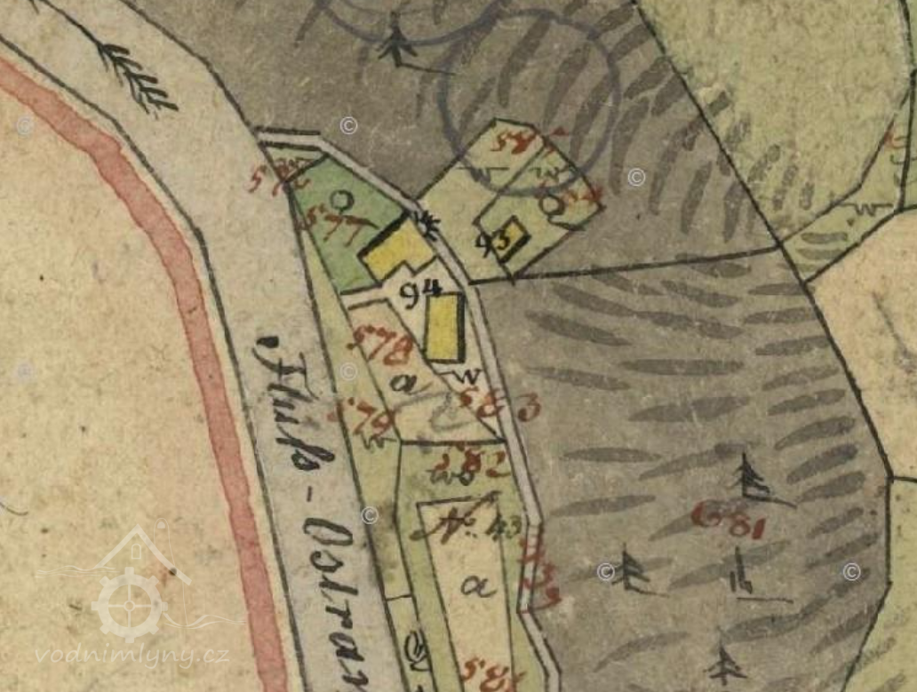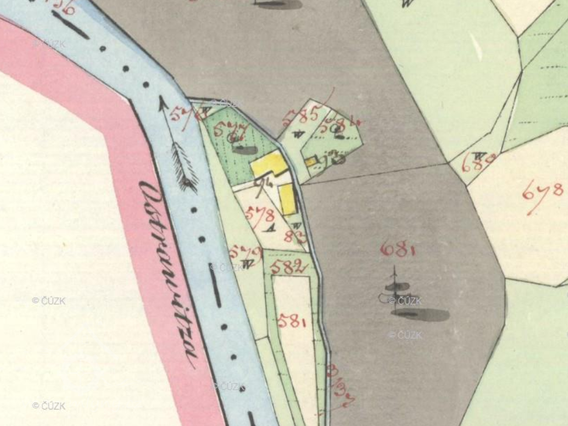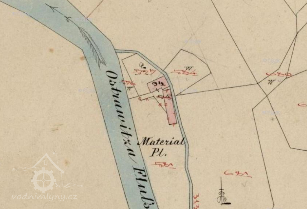 Zaniklý mlýn s pilou naproti Arcibiskupské pile v Ostravici, původně na katastru Starých Hamrů.