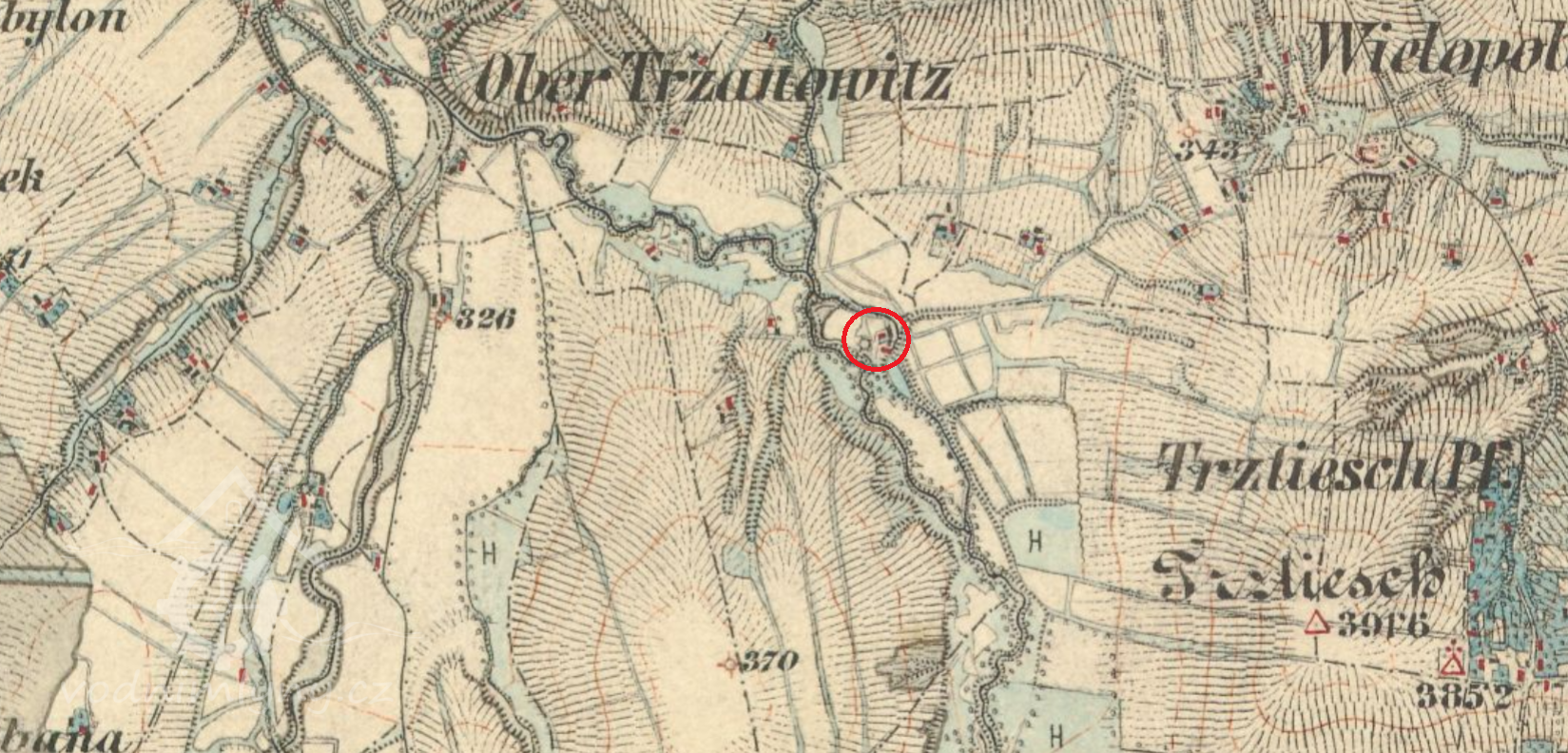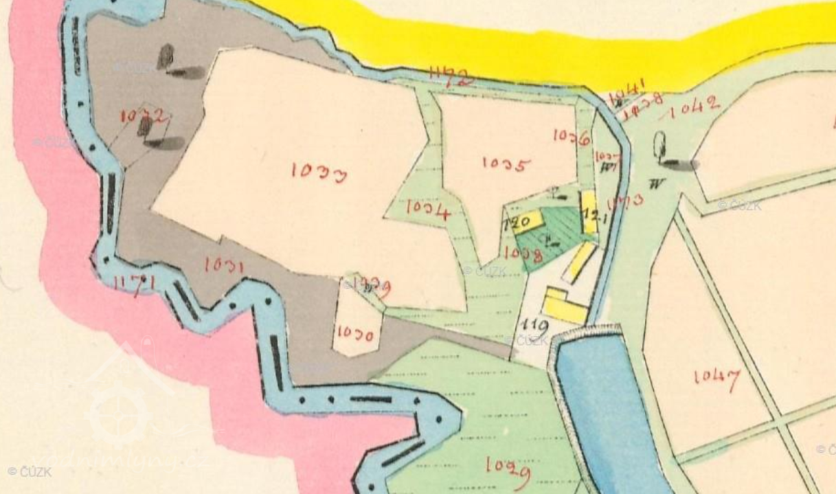 Mlýn pod obnovenými rybníky na sz okraji katastru.