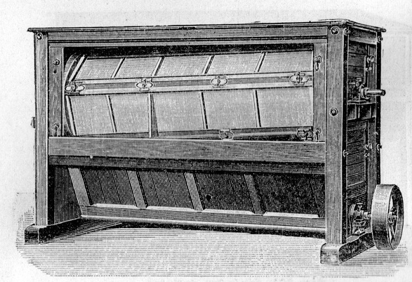 Vysévač moučný –  obrázek z knihy Lehrbuch der Müllerei, G. Pappenheim, Wien 1903.