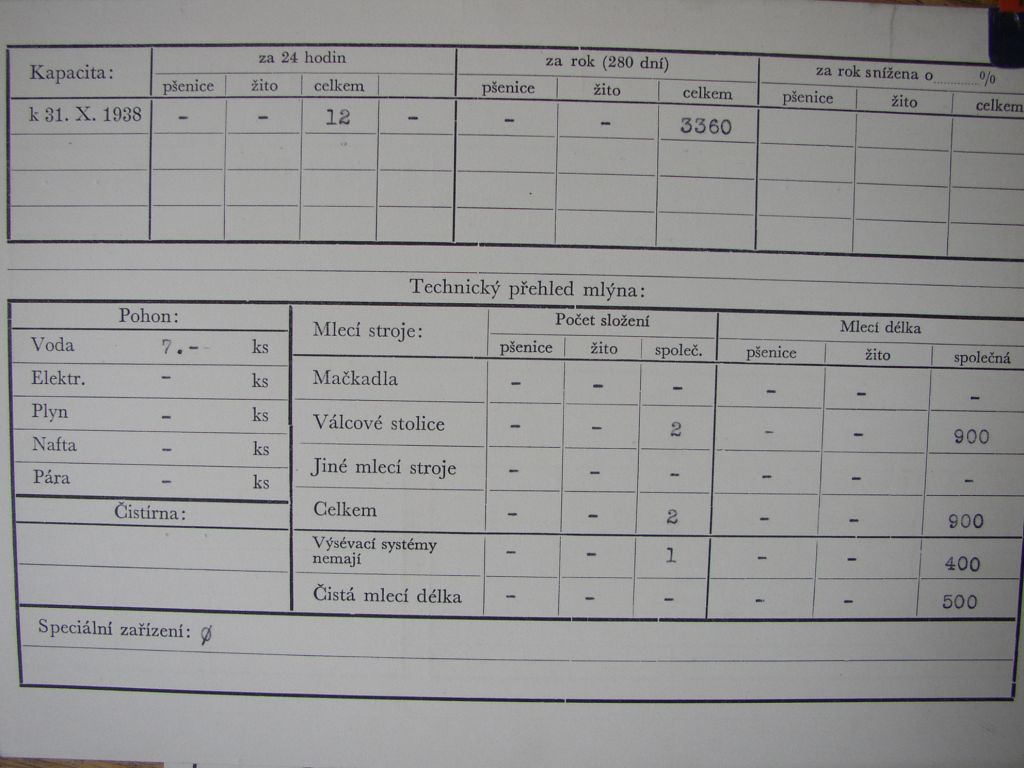Kartotéka k téměř 4 000 mlýnů je neúplným seznamem vodních mlýnů, uvedených ve složkách fondu Mlynářského ústředí v Národním archivu. Ne všechny mlýny, uvedené ve fondu zde mají svou kartu a naopak, k mlýnům, jejichž složka se ve fondu Mlynářského ústředí nenachází, může existovat karta. Tak lze získat aspoň základní informace z dotazníku, který Ústředí mlynářům posílalo roku 1939. Jednotlivé karty jsou řazeny v abecedním pořádku po okresech. Na kartě velikosti A5 jsou z obou stran uvedeny následující údaje: adresa mlýna, majitel, výkon mlýna, kapacita, počet složení a mlecí délka válců a výše kontingentu, okolní mlýny, nejbližší železniční (nakládací) stanice, přidružené podniky, případná absence vysévacích systémů či jiná zapojená mlecí zařízení aj.