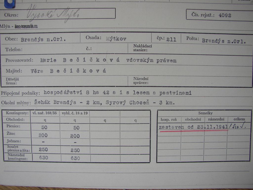 Uvádí se zde rejstříkové číslo, shodné se signaturami složek ve fondu Mlynářského ústředí.