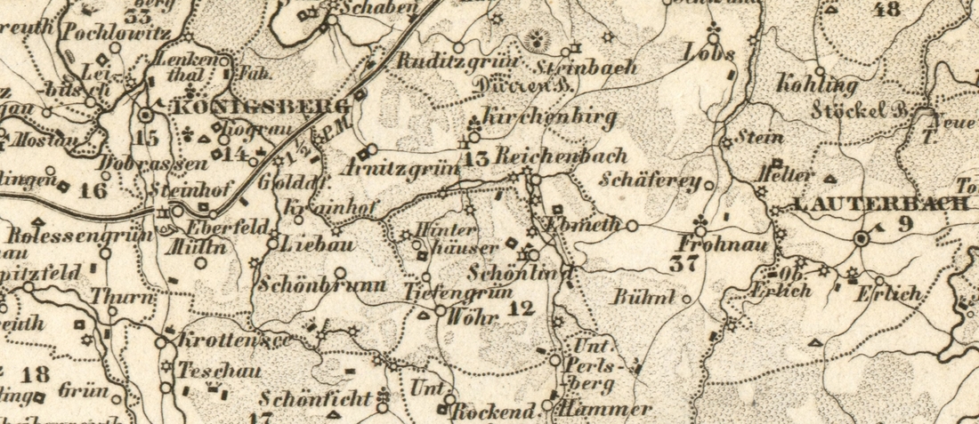 Ukázka z mapy Království českého (1850). Soukromá sbírka.