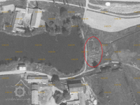 Zděná budova mlýna obdélníkového půdorysu a 3 hospodářskými budovami ze spalného materiálu.