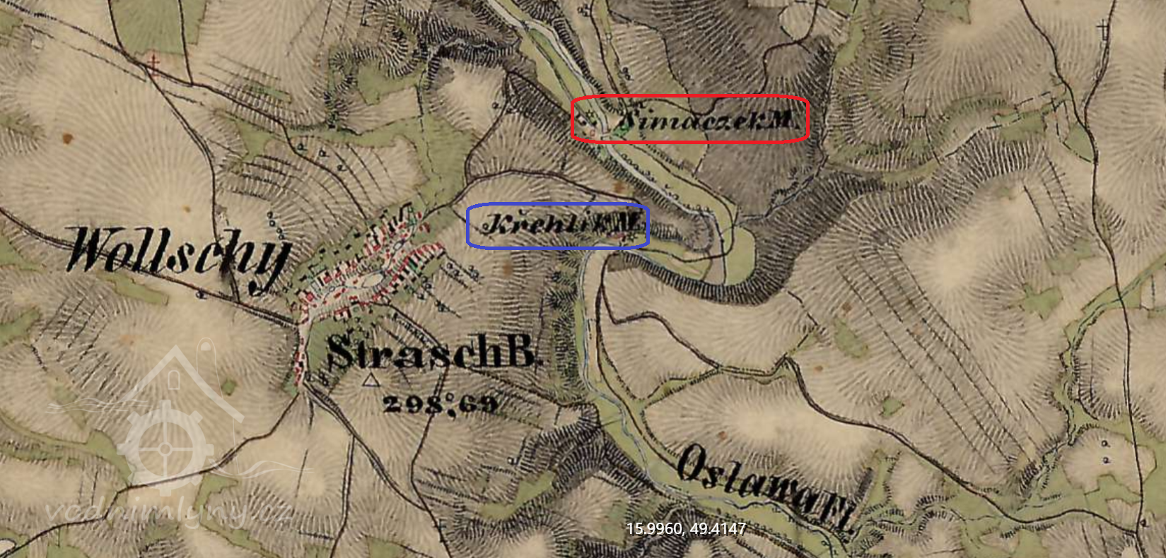 Popis1930: 2 kola na svrchní vodu, hltnost 0,27 m3/s, spád 3 m, výkon 7 HP