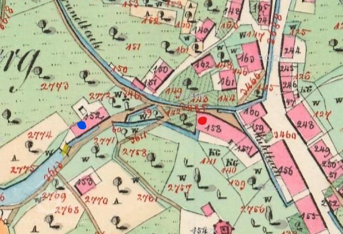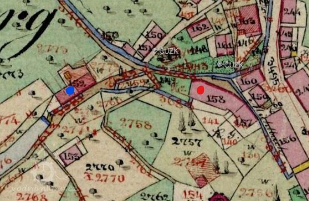 Voda byla přiváděna náhonem z Hlušinového rybníka do nedalekého Preissova mlýna a odtud do Aspenova mlýna.