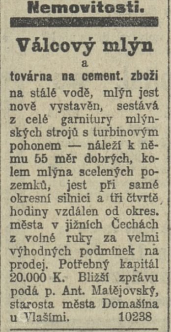 Válcový mlýn Jos. Matějovského, Mlýn hamr Vladimír Touš
