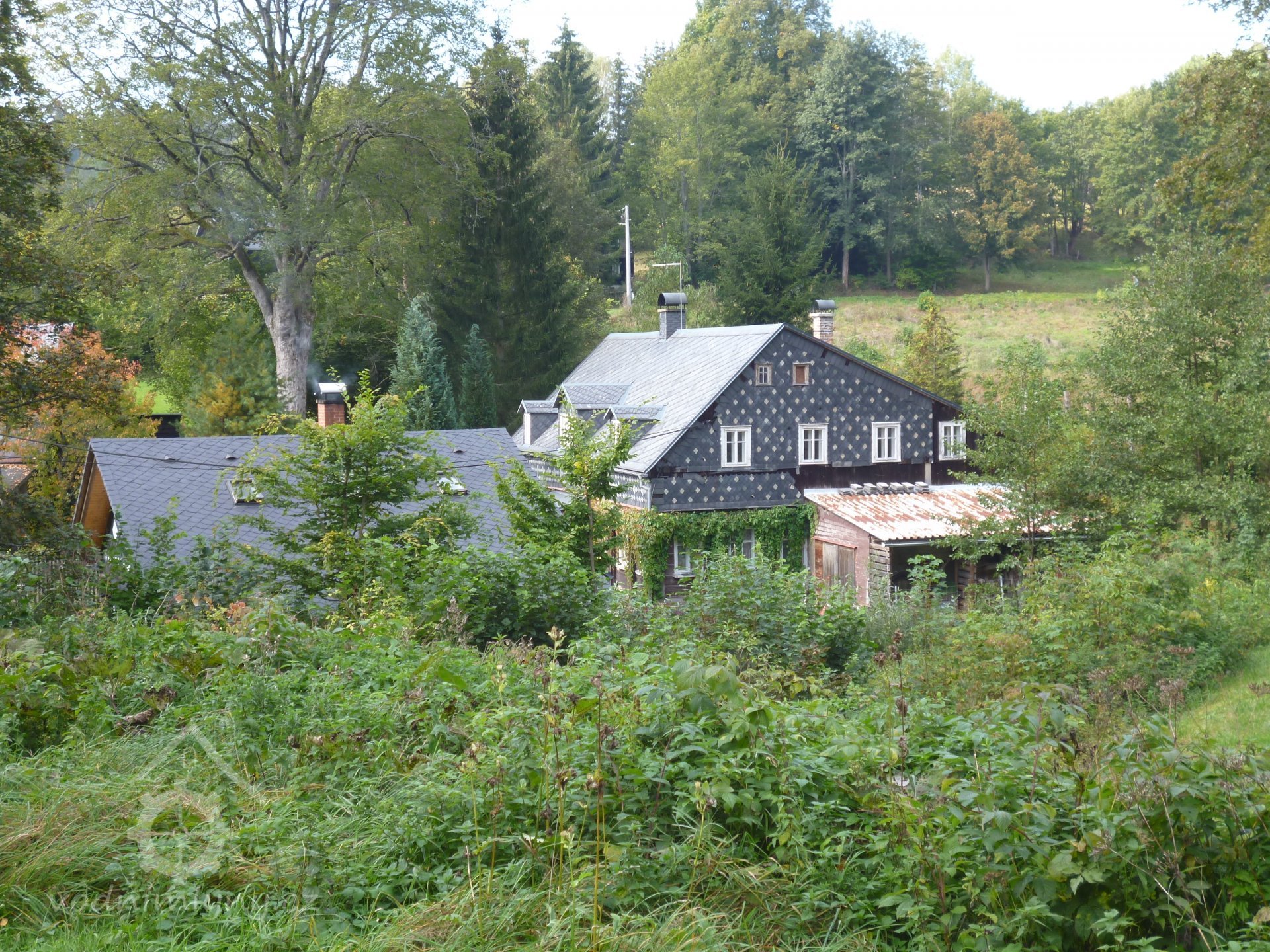 Zděná přízemní obdélníková budova částeně roubená s podstávkou s vysokým podkrovím pod sedlovou střechou a se štítem obloženým břidlicí.