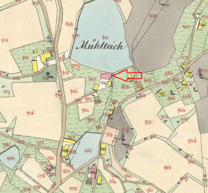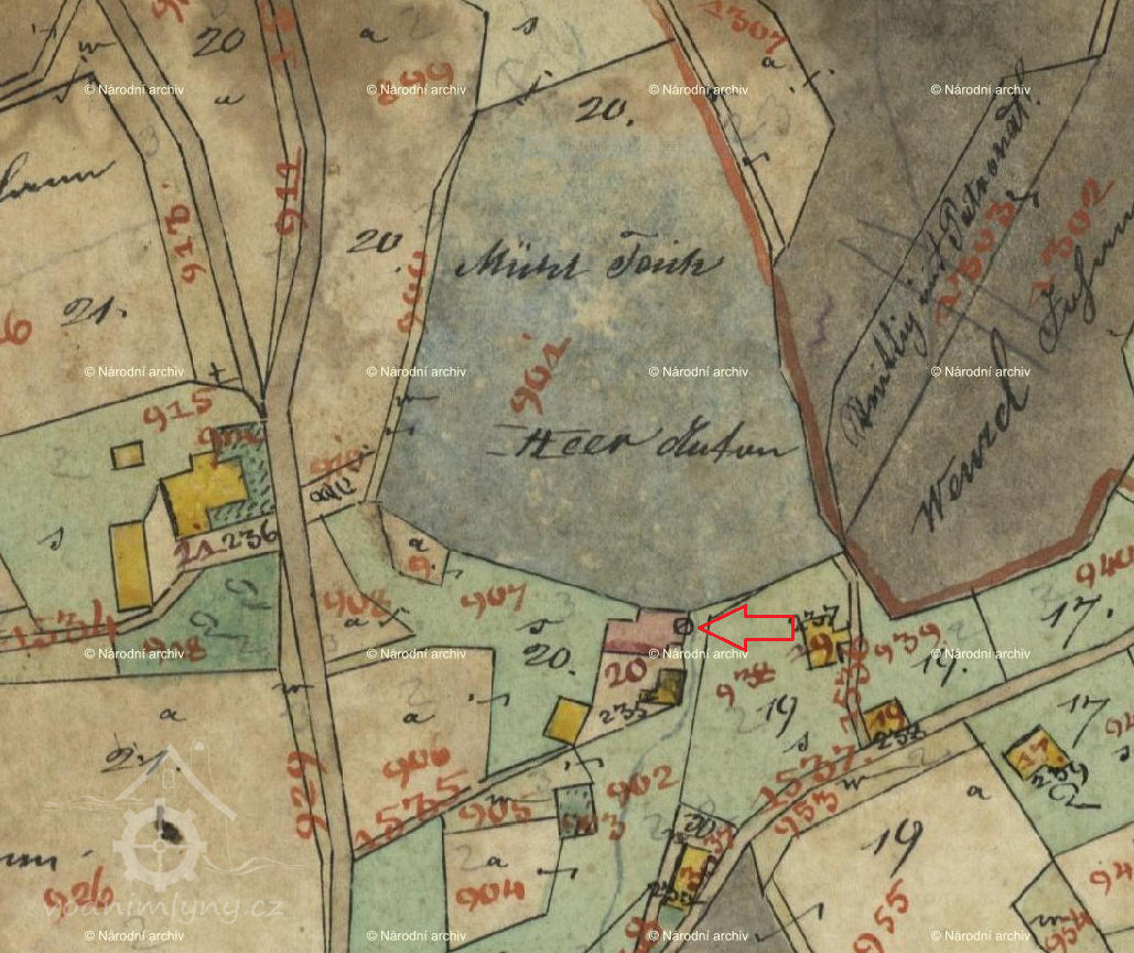 Anton Heer je uváděn jako majitel čp. 20 včetně rybníka nad mlýnem na indikační skice z roku 1843.