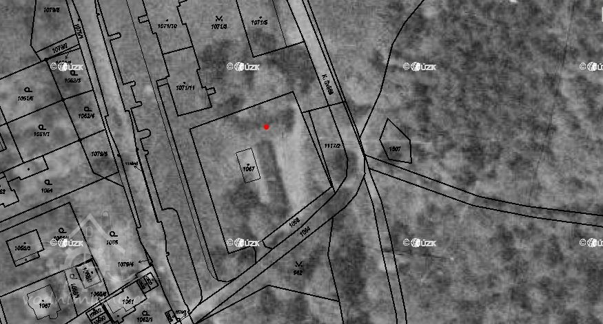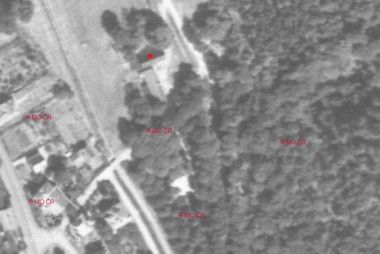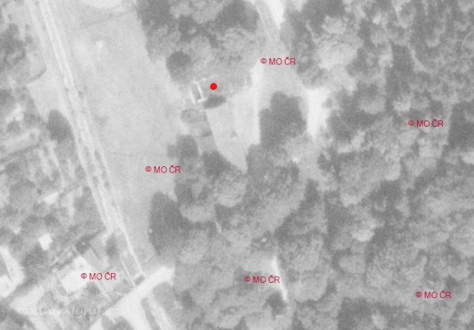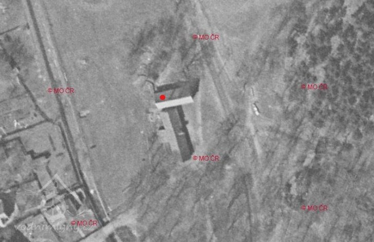 1963 - na leteckém měřičském snímku jsou z mlýna už jen obvodové zdi. Stodola ještě stojí.