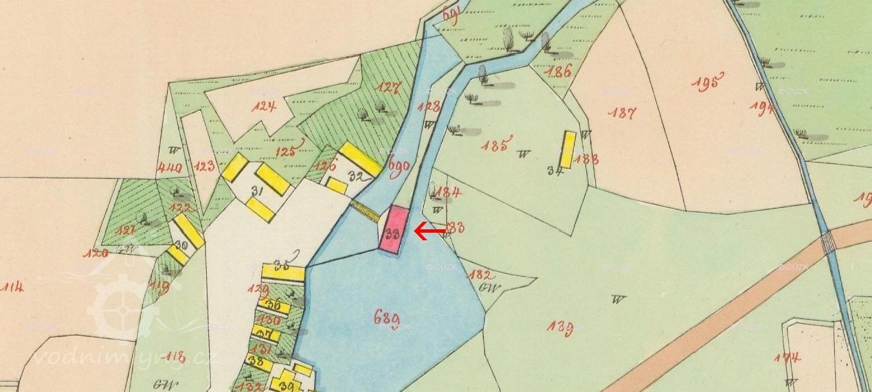 PopisV roce 1930 byla ve mlýně 1 Francisova turbína, hltost 1,13 m3/s, spád 1,36 m, výkon 14,75 HP