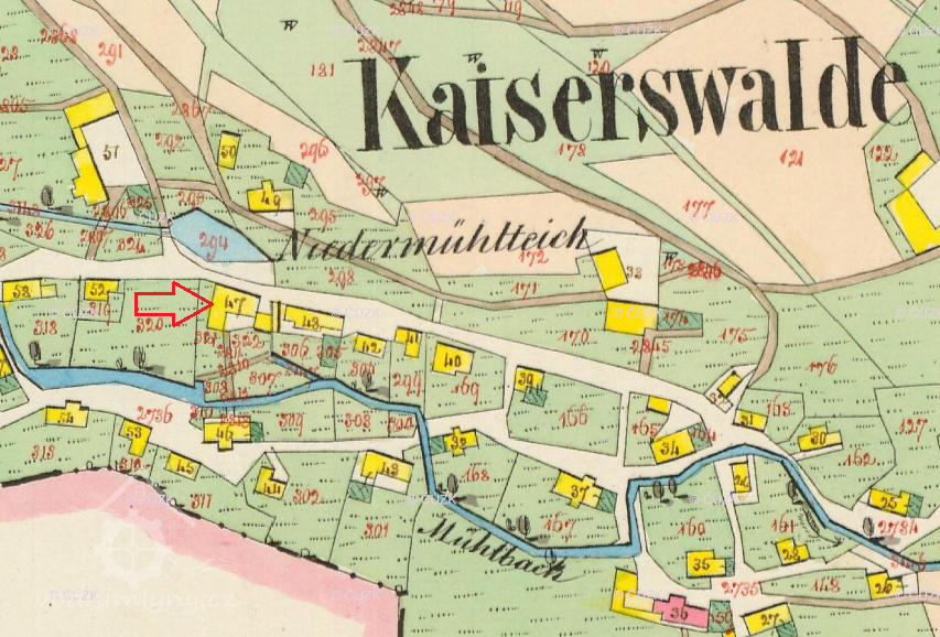 V roce 1771 dostal mlýn čp. 81. Tehdy zde hospodařil „dolní“ mlynář Frantz Pflaume (33), jeho manželka Maria Anna (37) a dcery Theresia (10) a Maria Helena (8). Mlynář provdal svou starší dceru Theresii za mlynáře Josepha Wünscheho, který pak převzal mlýn. Manželům se na mlýně postupně narodili Joseph (1782), Theresia (1784), Maria Theresia (1787) a Eleonora (1790). S rodinou zde žila vdova po předchozím mlynáři Maria Anna Pflaume. Tento stav trval přibližně do roku 1798, na začátku roku 1799 již oba manželé Wünsche nežili, soupis poddaných uváděl na mlýně čp. 81 pouze 3 jejich děti s babičkou Marií Annou Pflaume. Mlynářskou živnost provozoval nájem Joseph Pietschmann s manželkou Magdalenou.