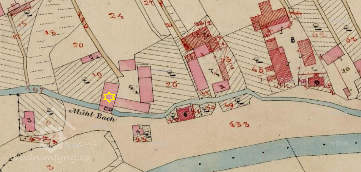 Popis1930: 1 kolo na svrchní vodu, hltnost 0,32 m3/s, spád 3,5 m, výkon 9,6 HP