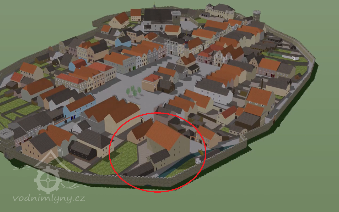 Mlýn uvnitř městských hradeb ve Vidnavě, po I. světové válce kamenictví, po II. světové válce zbořený.