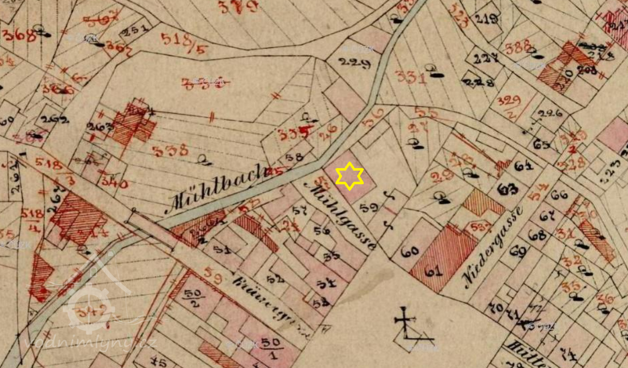 Popis1930: 1 kolo na svrchní vodu, hltnost 0,6 m3/s, spád 2,4 m, výkon 12 HP