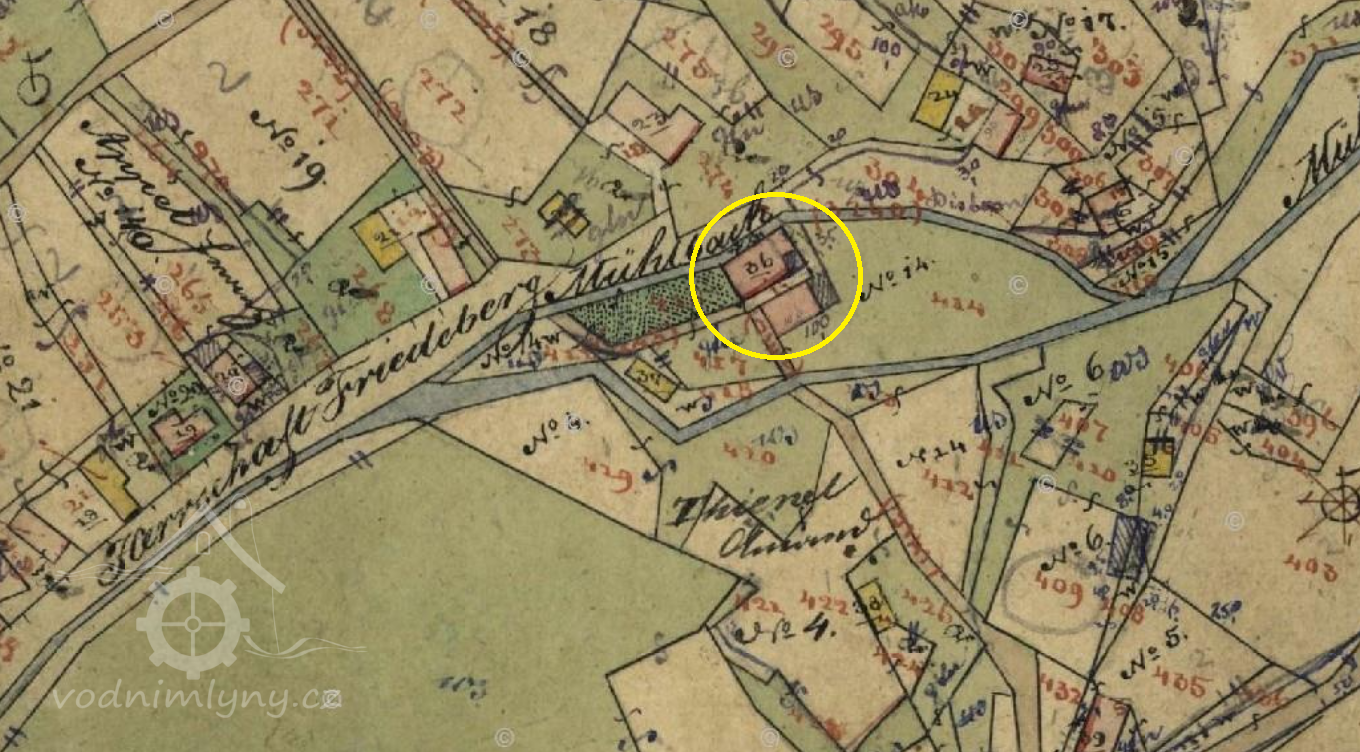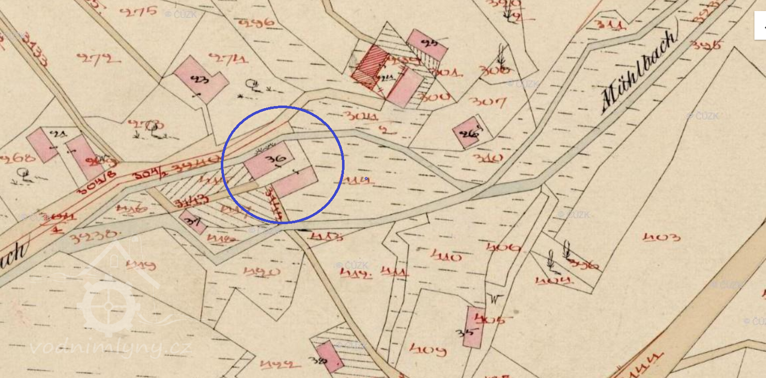 Popis1930: 1 kolo na svrchní vodu, hltnost 0,12 m3/s, spád 3,3 m, výkon 3,4 HP