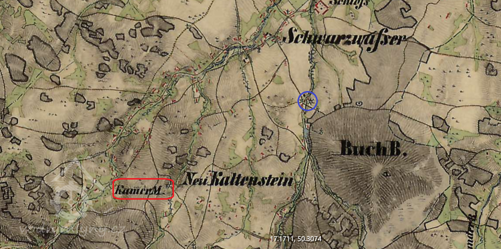 500 m jižně od kostela P.Marie v Černé Vodě