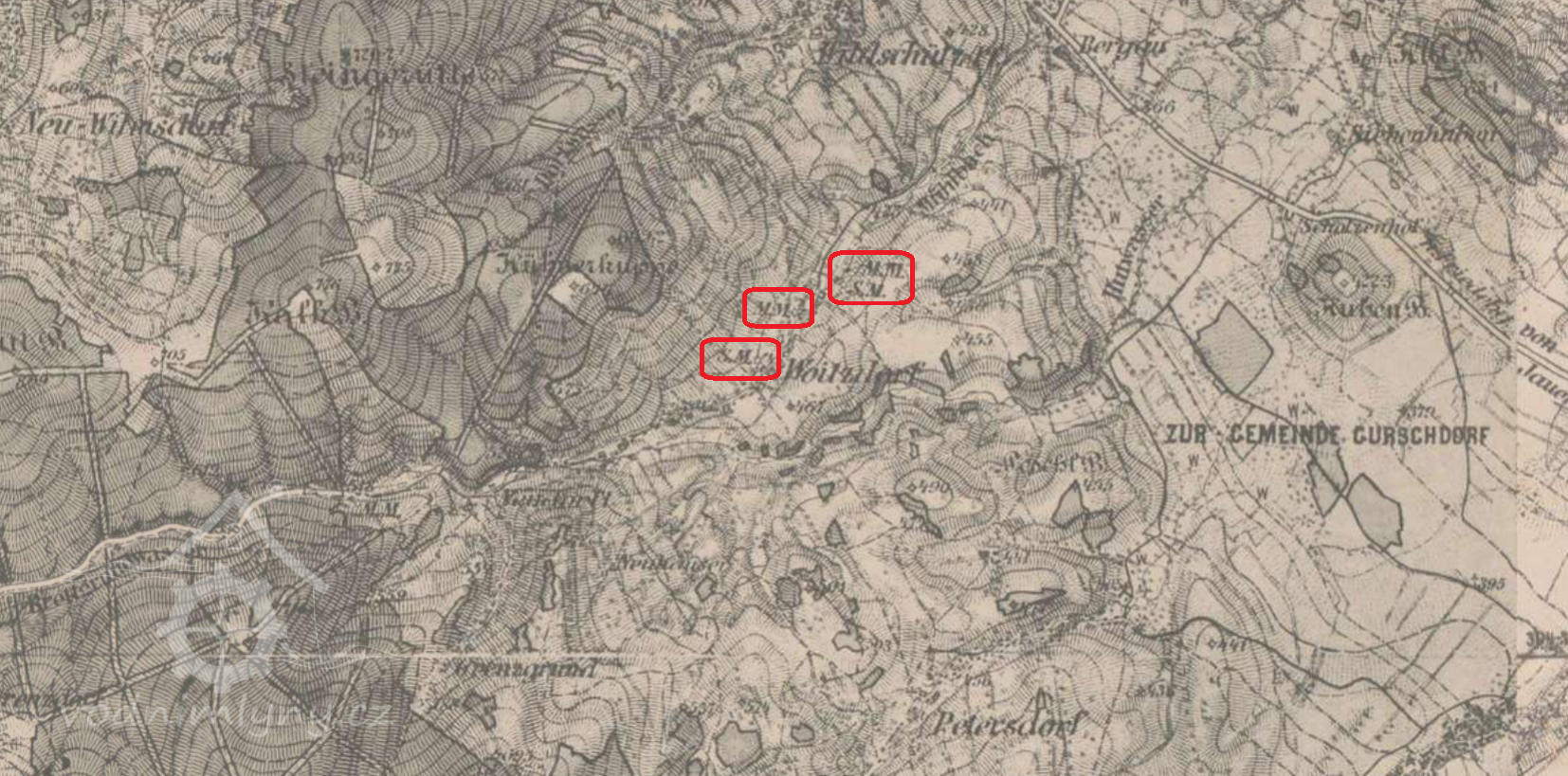 650 m sv od kostela sv. Ignáce ve Vojtovicích