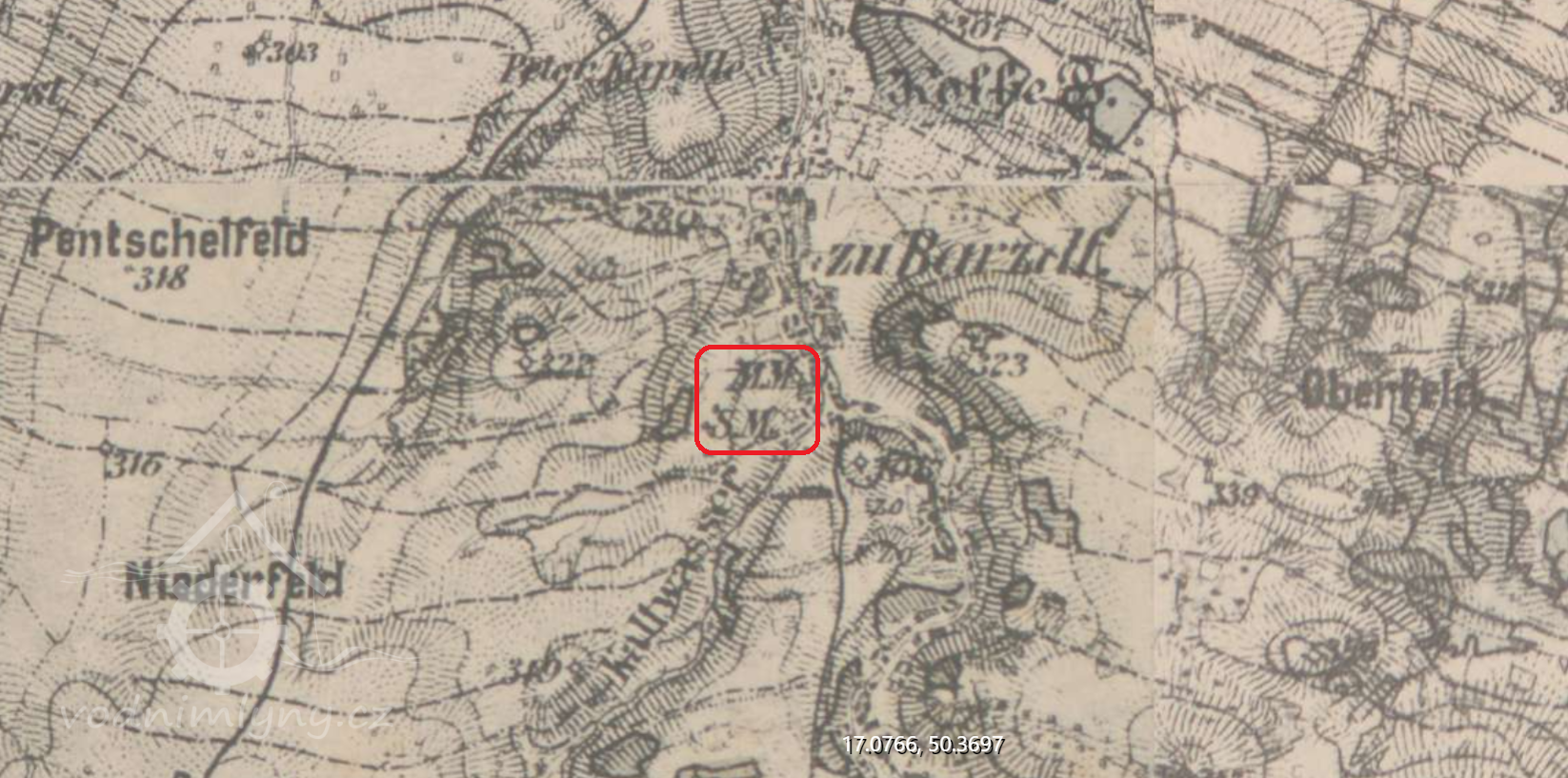 2,7 km jižně od kostela sv. Petra a Pavla v Bernarticích