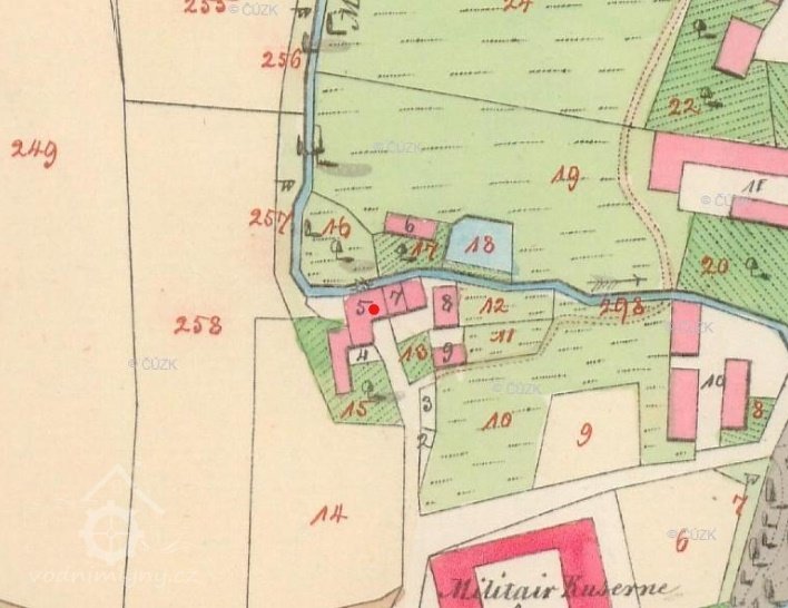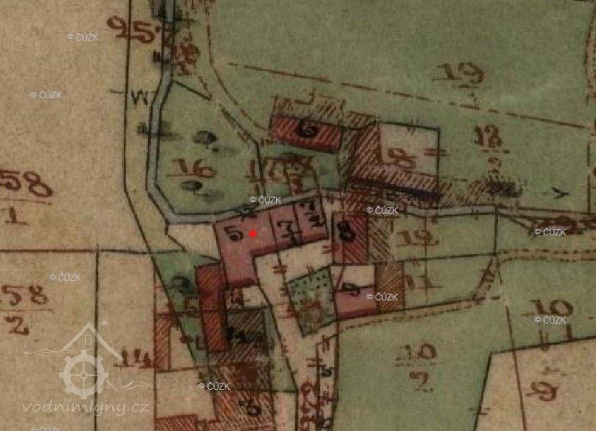 Zbořený mlýn, na jeho místě postavena za 1. republiky vila ve funkcionalistickém stylu. Není známo, zda nějaké zdivo mlýna bylo zabudováno do vily. Nachází se 300 m severovýchodně od kostela sv. Alžběty.