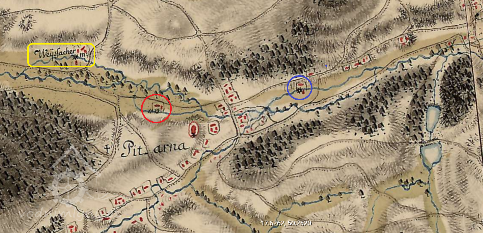 900 m sv od kostela Navštívení P.Marié v Pítárném